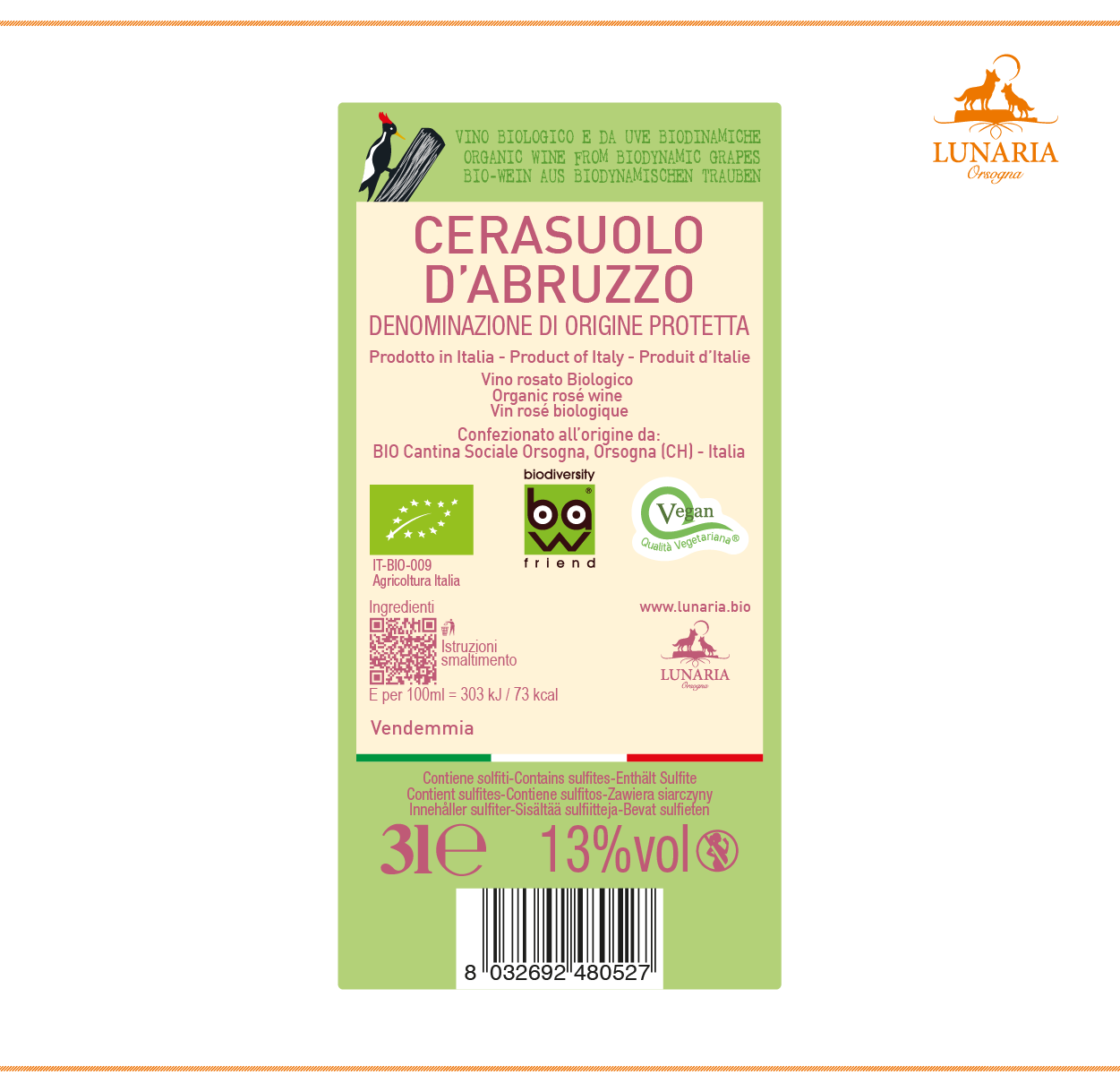 Rosa ciliegia, brillante con piacevoli sfumature violacee. Intenso e fruttato al naso, note di “cerasa” e fragola abbinata a mandorla e gelso. Il palato è fresco, armonico, caldo e di buon corpo.